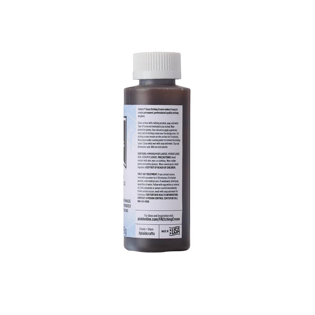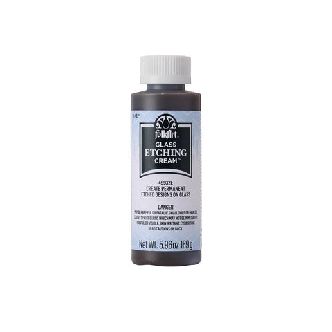 It's never been easier to create permanently etched designs on glass with FolkArt Glass Etching Cream. The FolkArt Glass Etching Cream formula allows you to easily etch beautiful designs on almost any glass surface. Create monogrammed wine glasses, jars, decorative vases, and so much more with this fast-acting glass etching cream. You can even use with stencils to expand your design options with this unique etching cream for glass. Use on a variety of surfaces including mirrors, windows, coasters, glasses, and more. It's great for indoor and outdoor DIY projects. FolkArt Glass Etching Cream is the easiest and fastest way to give your glass gifts a personalized touch. This formula is dishwasher safe making this a must-have product in your craft supplies. Explore the possibilities of personalizing and designing with the trusted quality of FolkArt Glass Etching Cream. PLEASE NOTE: PRODUCT CAN ONLY BE SHIPPED WITHIN THE CONTINENTAL USA.