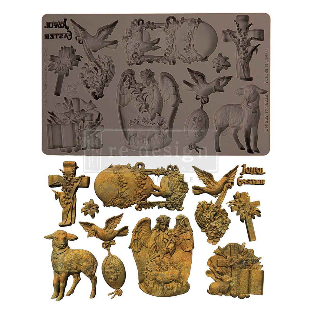 Celebrate the beauty and symbolism of the season with Eternal Spring, a richly detailed Decor Mould featuring classic Easter imagery and spiritual motifs. This elegant set includes doves, crosses, lilies, a peaceful lamb, ornate eggs, angelic figures, and floral accents—all designed with beautiful texture and old-world charm. Perfect for faith-based décor, Easter displays, keepsake projects, communion gifts, shadow boxes, mixed-media art, and decorative figurines. Cast in resin, clay, or modeling material to create meaningful embellishments that bring reverence, hope, and renewal to any creative piece. Eternal Spring adds heartfelt significance and timeless artistry to every project.