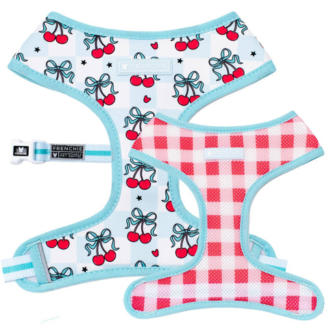 Our number one seller, Frenchie Duo Reversible Harness- two looks in one! Rock the printed neoprene side one day, mesh the next. Plus, get the matching Comfort Leash (sold separately) for complete cuteness. It fits small-medium pups and comes with a signature Frenchie Bulldog Reversible Design, upgraded Frenchie Bulldog Fit, premium custom printed neoprene with form-fitting/quick-dry capabilities, custom printed breathable mesh, and a Frenchie reflective printed safety label.