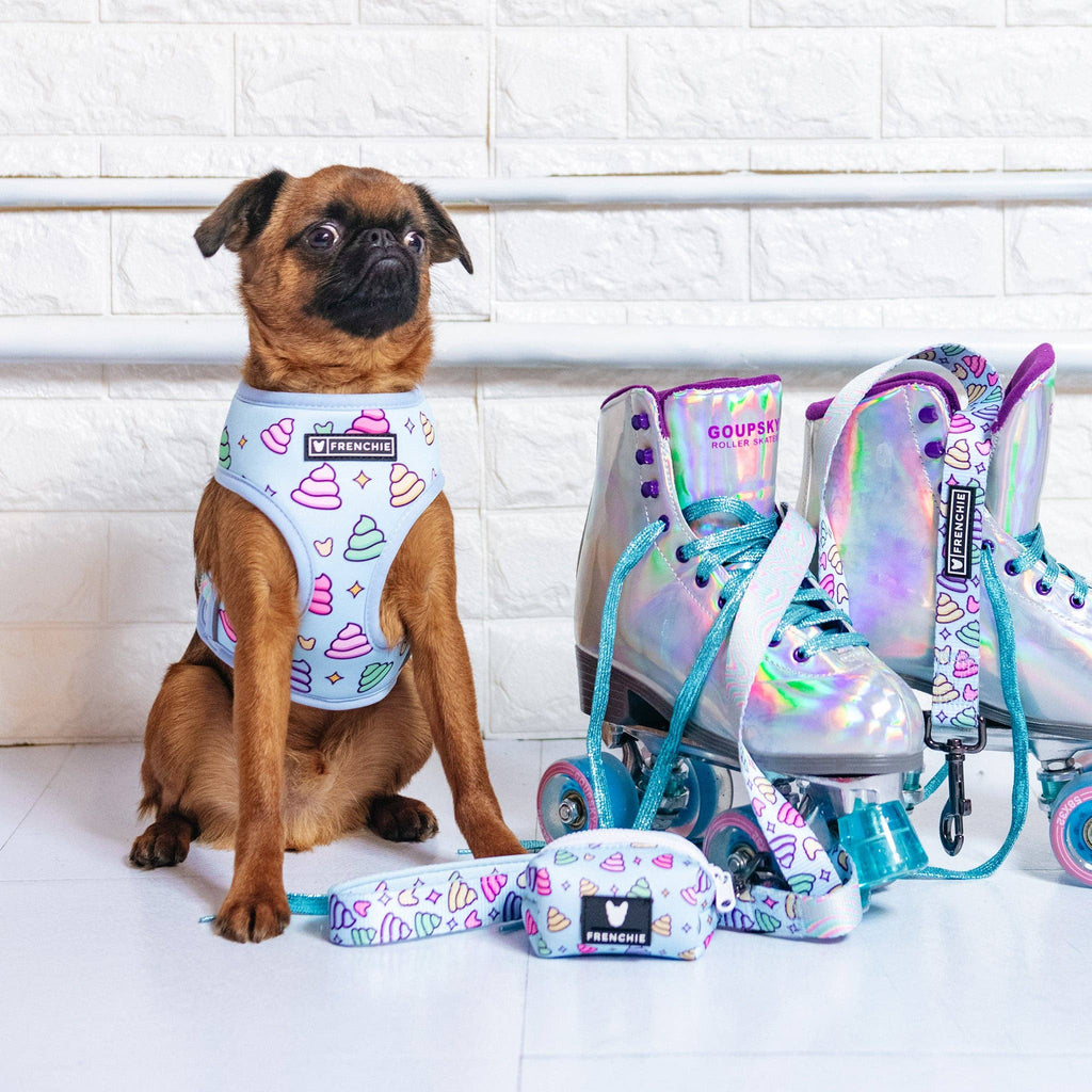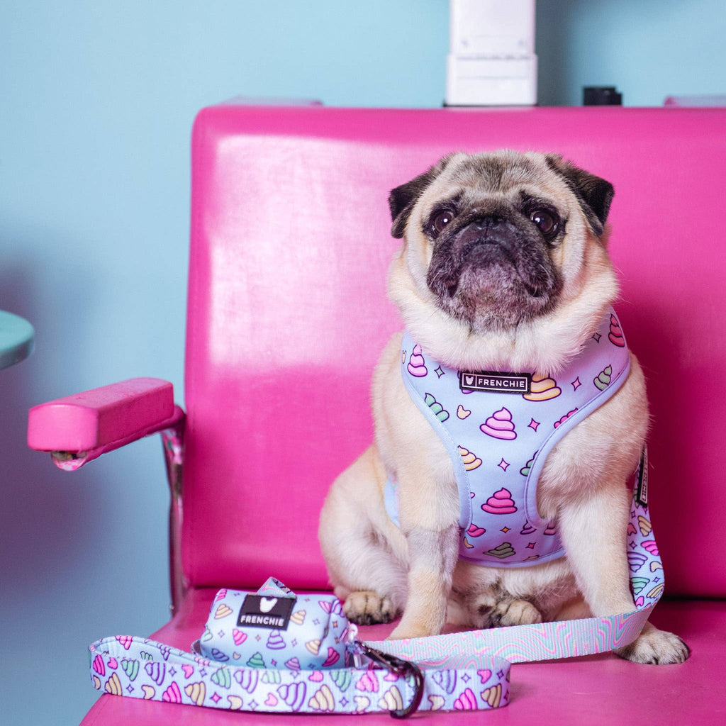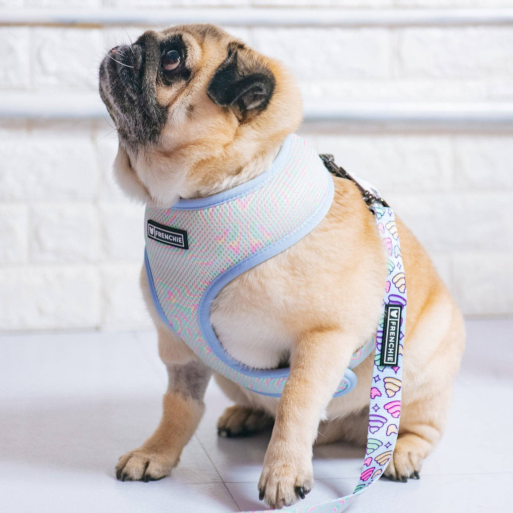 The Frenchie Duo Reversible Harness is interchangeable between two fun, fashionable printed sides, giving you two harnesses in one! In just seconds you can switch between a printed neoprene fabric harness and a printed mesh harness. Complete your look with the matching Comfort Leash - sold separately!