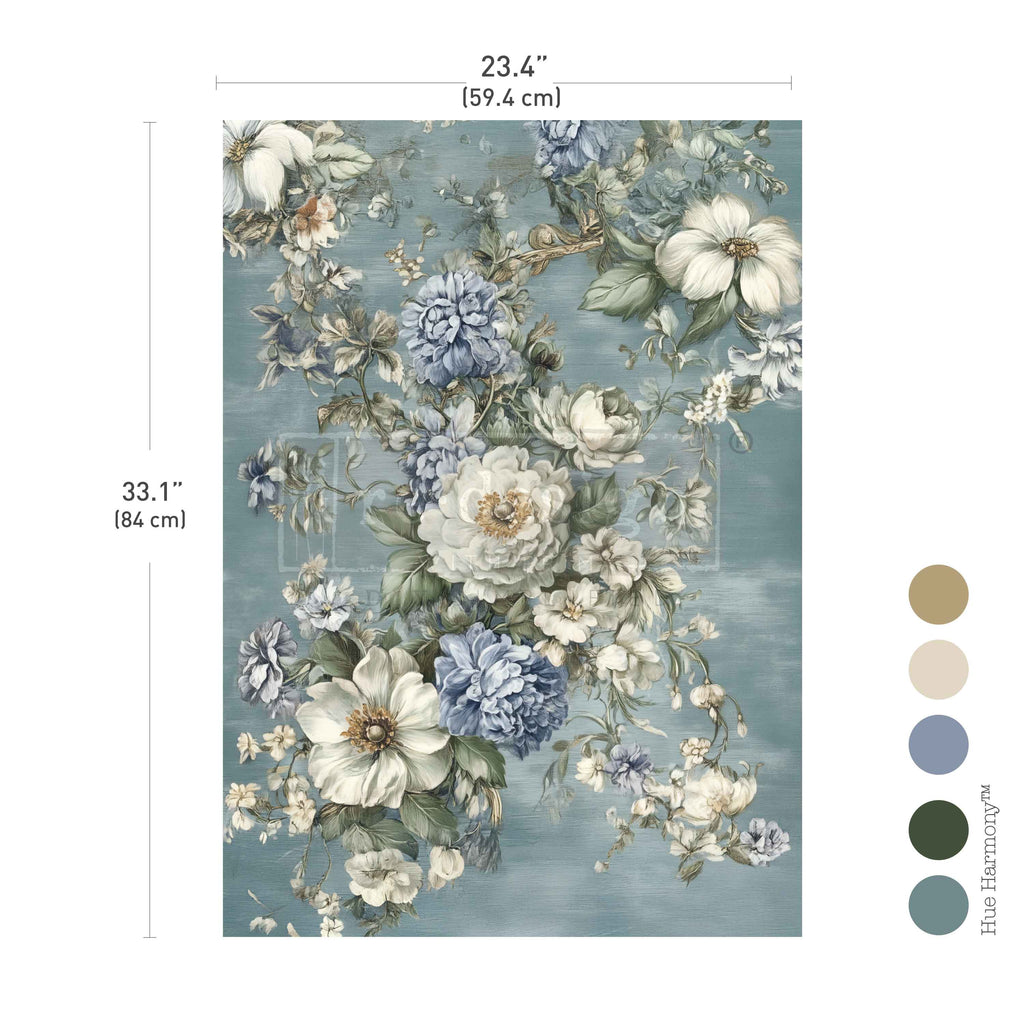 Soft blooms in delicate whites, pale blues, and sage greens spill across a muted backdrop—Tender Tones is calm, graceful, and endlessly elegant. This floral beauty brings a quiet sophistication to any surface, perfect for romantic, vintage, or cottage-style projects.