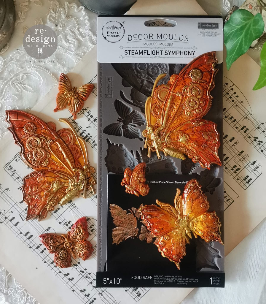 Mechanical butterflies? Yes, please! Décor Moulds® - Steamflight Symphony turns delicate wings into something completely unexpected, blending vintage elegance with intricate gears and metal-like details. Perfect for furniture makeovers, statement Décor, or even cakes that deserve something extra. Works with resin, clay, fondant, chocolate, and more. Food-safe and oven-safe, so go ahead—craft it, bake it, make it yours. Only by Redesign with Prima®.